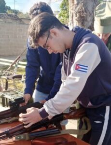 Explicó que ellos se entrenaron en el arme y desarme del fusil AKM, el uso de los equipos de comunicación, el enmascaramiento para las distintas etapas de las acciones combativas y realizaron el tiro con el arma prevista para el entrenamiento.